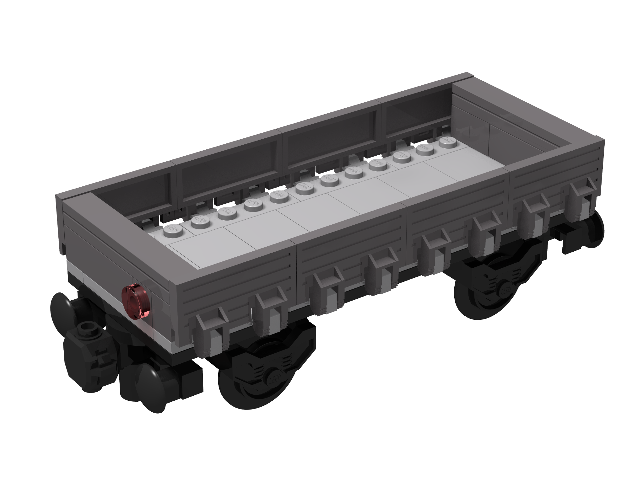 Az első modellem, egy kéttengelyes vasúti kocsi. Az eredetiben a kerekek a kocsi végein voltak, az "a" változatban 1-1 studdal beljebb toltam őket, így könnyebben kanyarodik és nem néz úgy ki, mintha átlépne valamit :)